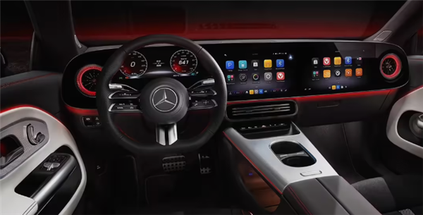 车里还搭载了第四代MBUX智能人机交互系统,贯穿式的LED灯带连接着两侧的头灯,